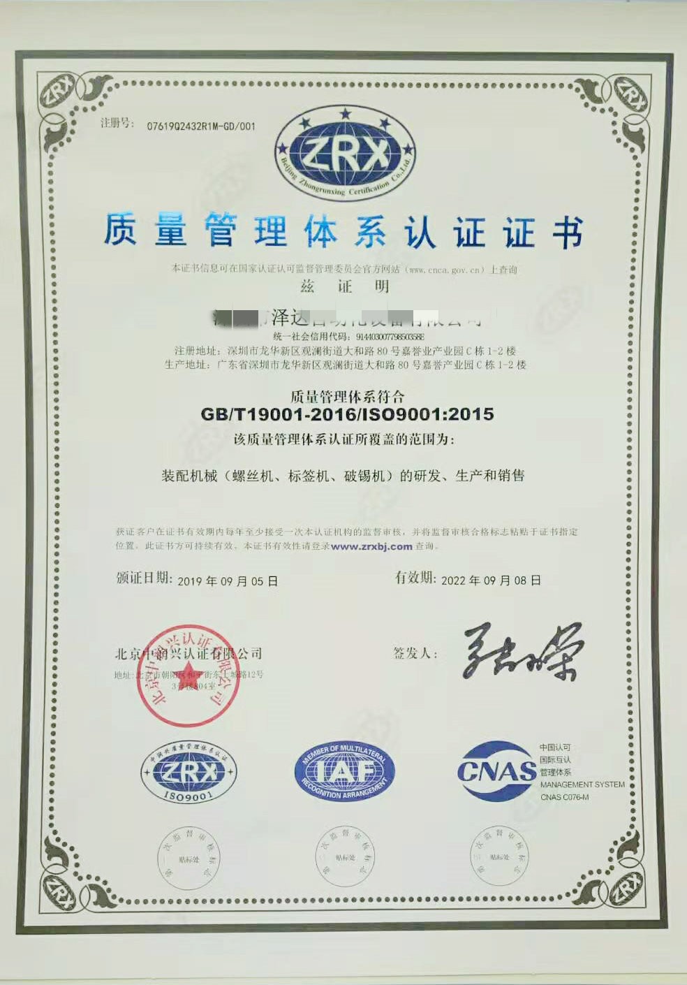 關(guān)于我們已通過ISO9001質(zhì)量管理體系認(rèn)證
